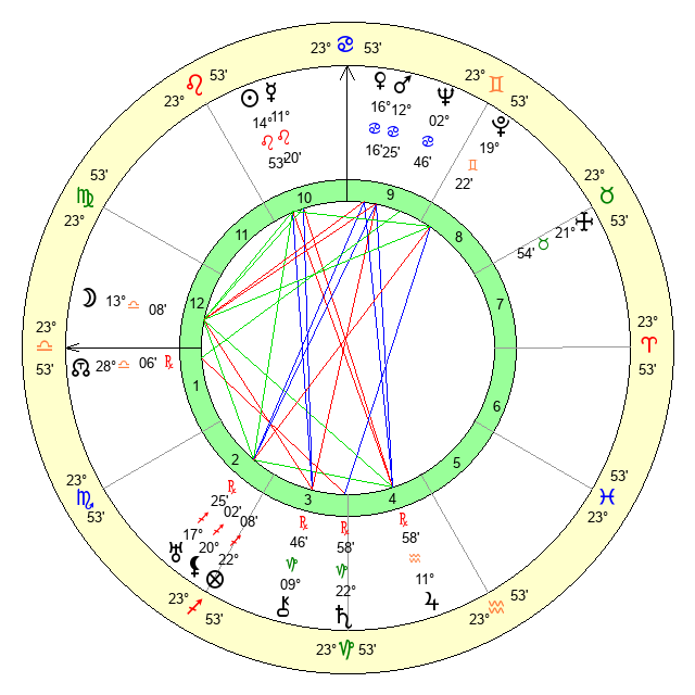 | Sun | 14 Leo 53 | 16 Leo 6 | 16 Sagittarius 23 |
