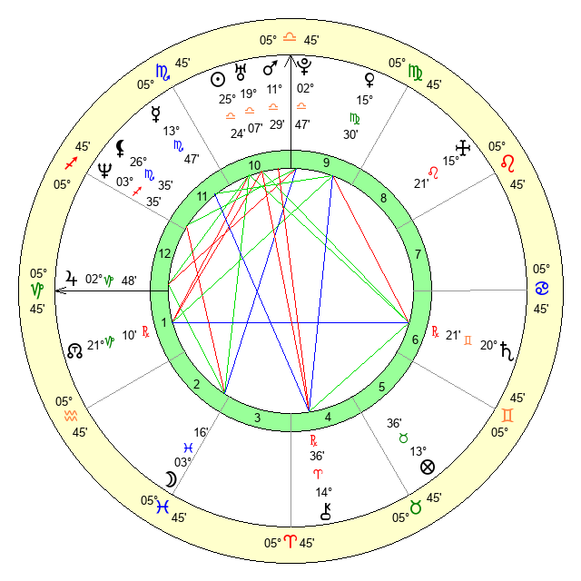 | Venus | 15 Virgo 30 | 5 Libra 59 | 19 Scorpio 58 |