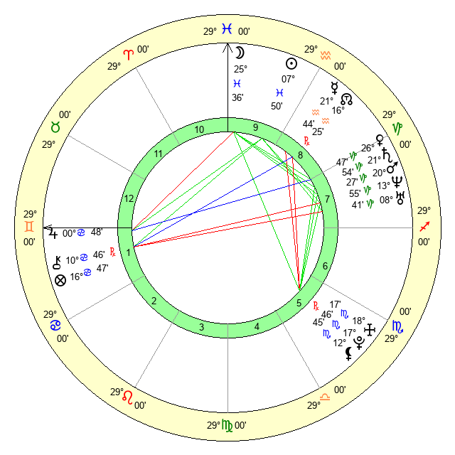 | Moon | 25 Pisces 34 | 20 Aquarius 31 | 16 Cancer 13 |