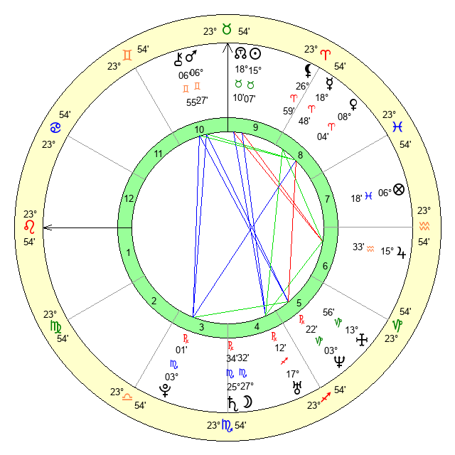| Moon | 27 Scorpio 33 | 28 Leo 42 | 11 Taurus 12 |
