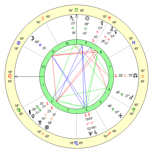 | Saturn | 23 Taurus 52 | 27 Pisces 37 | 0 Gemini 42 |