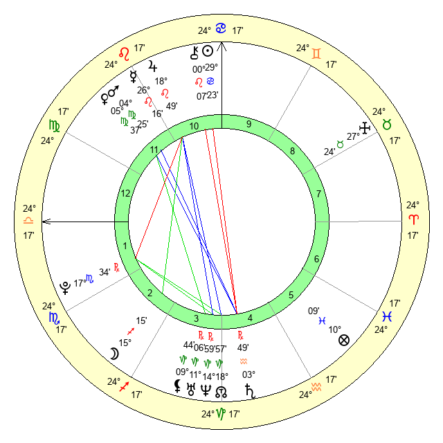 | Moon | 15 Sagittarius 19 | 2 Cancer 37 | 5 Pisces 51 |