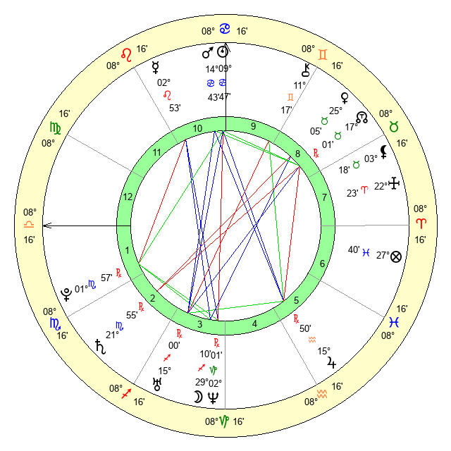 | Mars | 14 Cancer 44 | 8 Virgo 11 | 10 Leo 39 |
