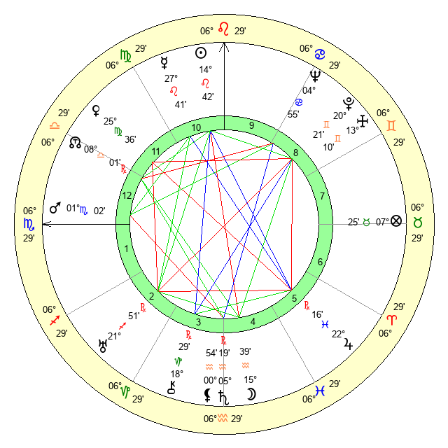 | Venus | 25 Virgo 36 | 9 Cancer 38 | 28 Libra 45 |