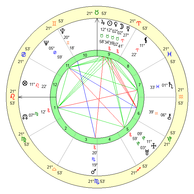 | Moon | 2 Taurus 3 | 3 Leo 9 | 23 Virgo 25 |