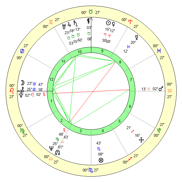 | Mars | 2 Aquarius 13 | 25 Cancer 12 | 27 Pisces 56 |