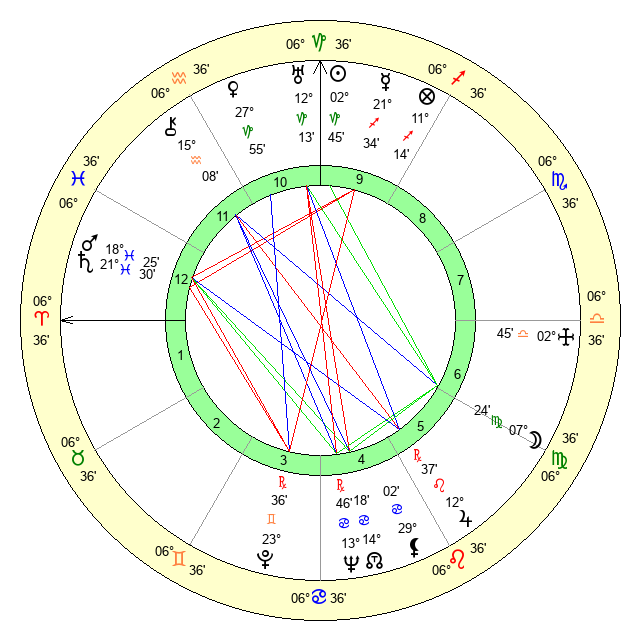 | Mars | 18 Pisces 24 | 3 Leo 46 | 9 Gemini 2 |