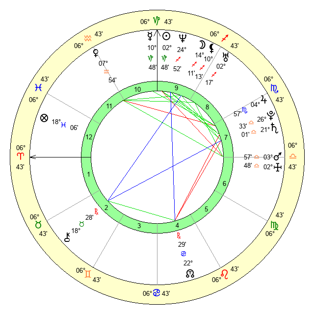 | Saturn | 21 Libra 24 | 13 Pisces 57 | 22 Libra 37 |
