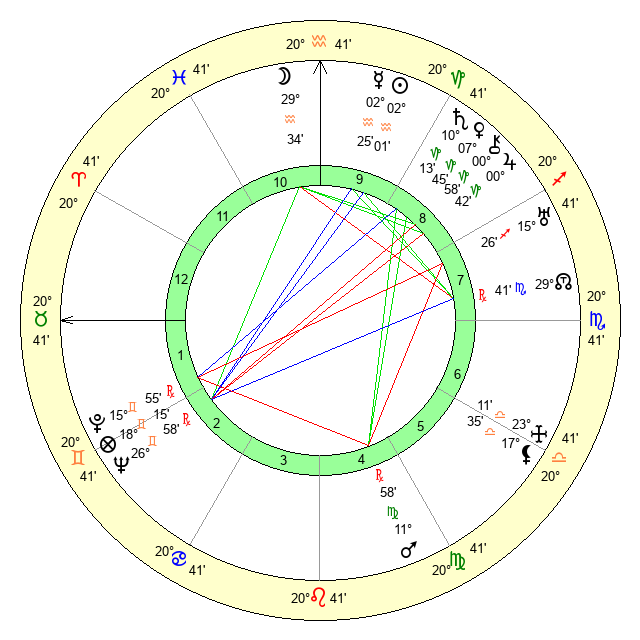 | Moon | 29 Aquarius 29 | 12 Scorpio 2 | 21 Virgo 27 |