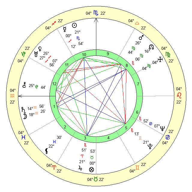 | Mars | 26 Virgo 44 | 7 Sagittarius 20 | 23 Scorpio 13 |
