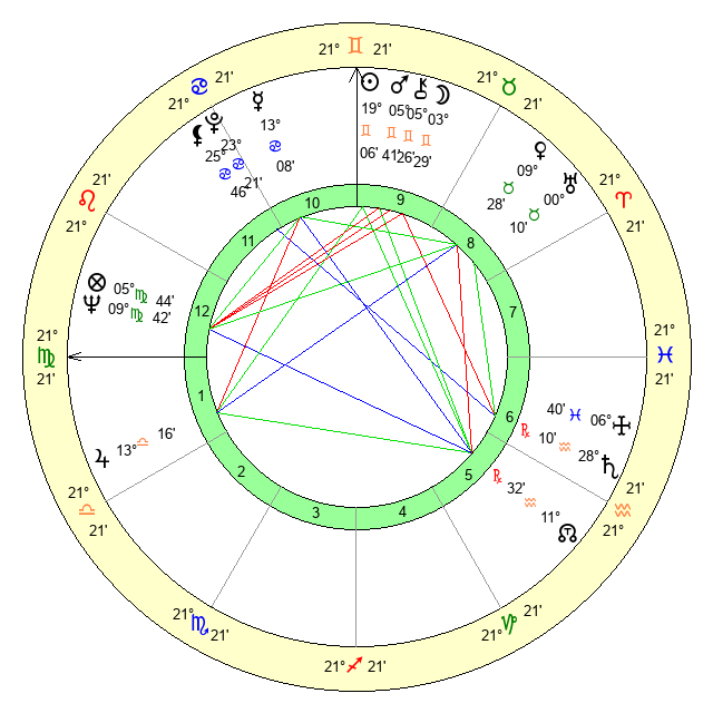 | Sun | 19 Gemini 6 | 20 Gemini 4 | 16 Virgo 18 |
