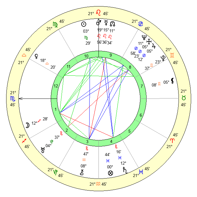 | Mercury | 15 Leo 36 | 19 Leo 21 | 11 Sagittarius 21 |