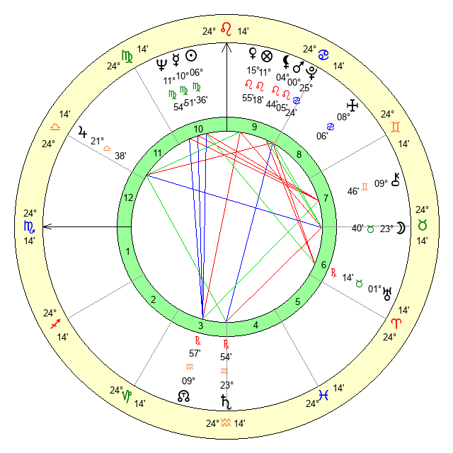 | Mercury | 10 Virgo 52 | 24 Leo 39 | 20 Scorpio 11 |