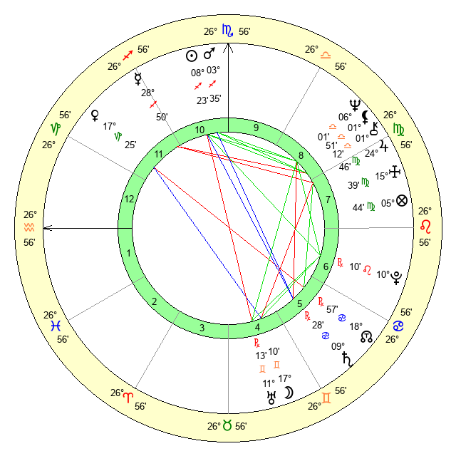 | Neptune | 6 Libra 2 | 29 Pisces 23 | 5 Libra 57 |