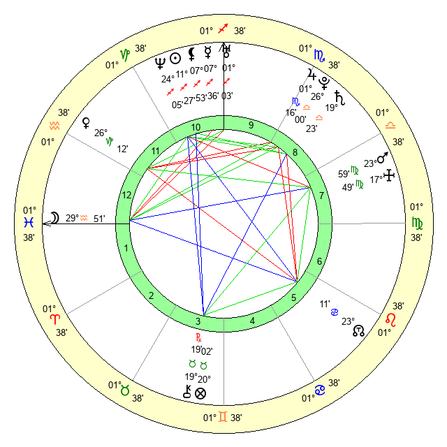 | Saturn | 19 Libra 46 | 25 Pisces 5 | 22 Libra 26 |