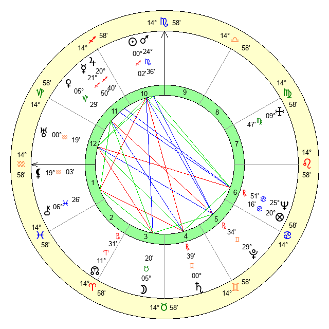 | Moon | 5 Taurus 23 | 27 Sagittarius 9 | 22 Gemini 29 |