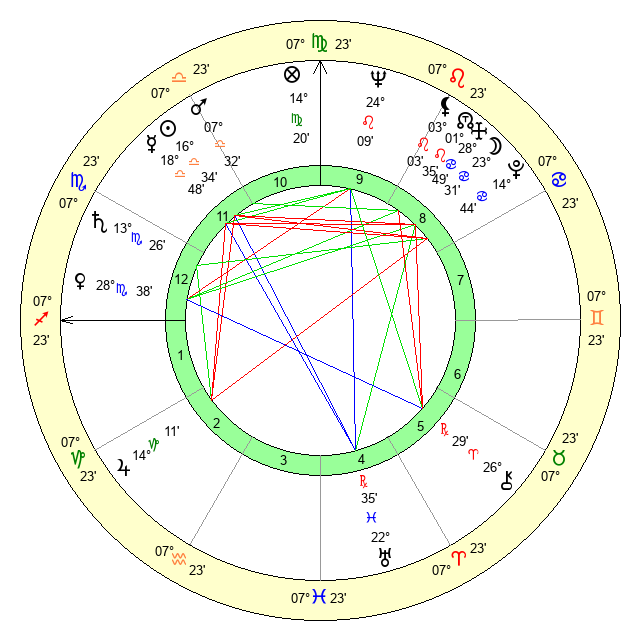 | Saturn | 13 Scorpio 56 | 26 Pisces 57 | 24 Scorpio 44 |