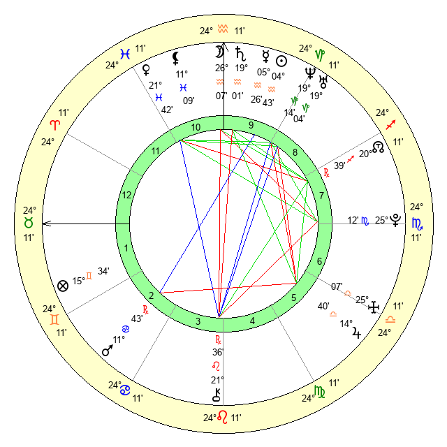 | Moon | 26 Aquarius 4 | 6 Sagittarius 16 | 22 Aries 24 |