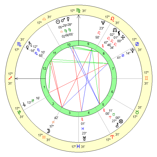 | Moon | 17 Aquarius 45 | 21 Leo 35 | 26 Virgo 29 |