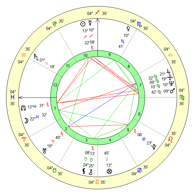 | Neptune | 10 Virgo 10 | 29 Pisces 22 | 8 Virgo 33 |