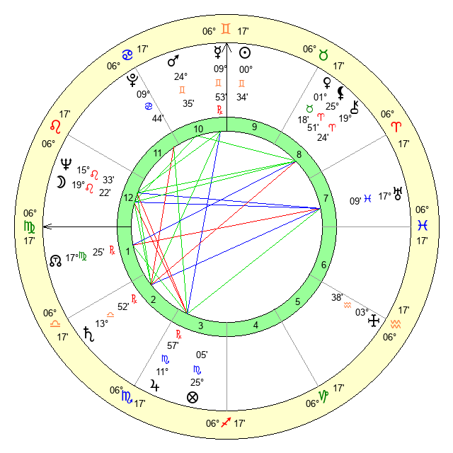 | Sun | 0 Gemini 34 | 1 Gemini 51 | 8 Virgo 13 |