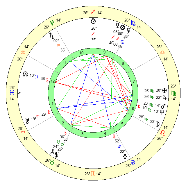| Neptune | 10 Virgo 10 | 27 Pisces 9 | 8 Virgo 14 |