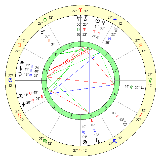 | Sun | 11 Aries 27 | 12 Aries 13 | 17 Cancer 53 |