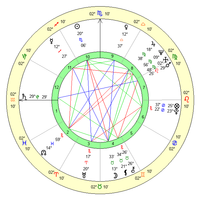 | Neptune | 9 Virgo 56 | 29 Pisces 34 | 9 Virgo 12 |