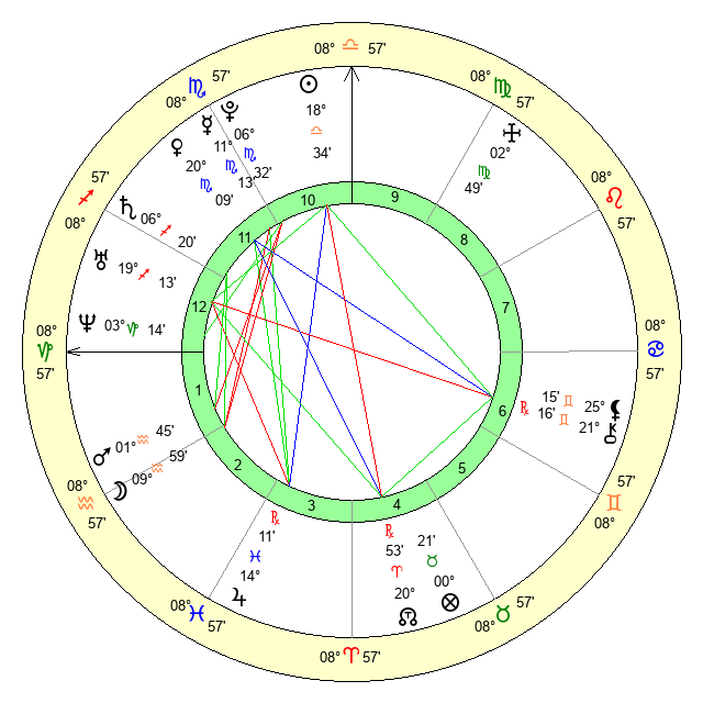| Venus | 20 Scorpio 9 | 27 Virgo 55 | 5 Scorpio 37 |