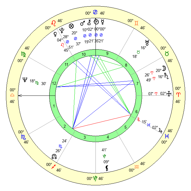 | Venus | 4 Leo 46 | 17 Taurus 3 | 10 Scorpio 11 |