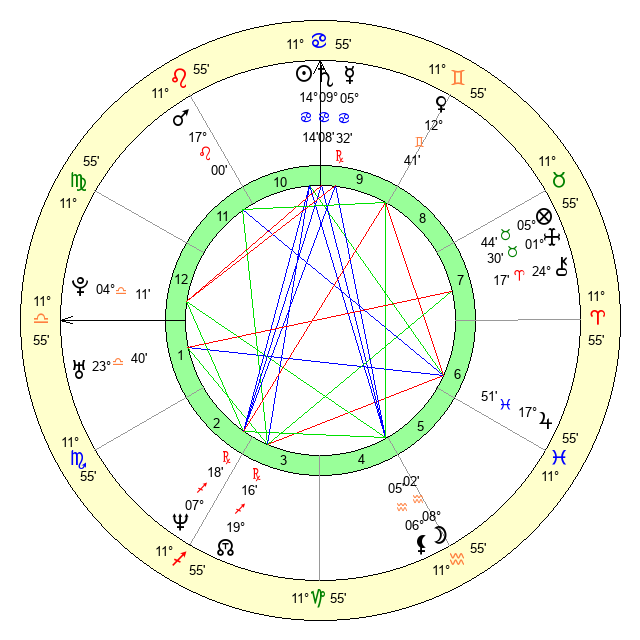 | Sun | 14 Cancer 14 | 14 Cancer 52 | 3 Virgo 4 |