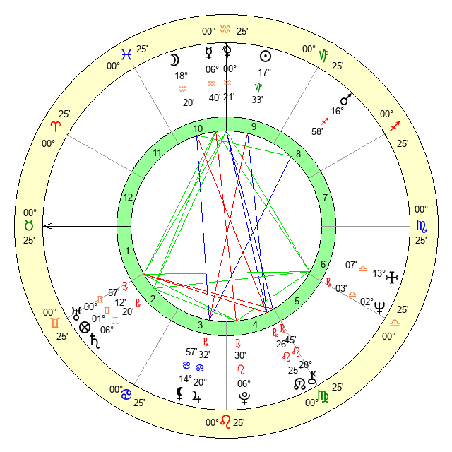 | Moon | 18 Aquarius 11 | 11 Taurus 11 | 14 Aquarius 58 |