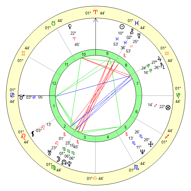 | Moon | 1 Virgo 26 | 4 Aries 18 | 4 Capricorn 55 |