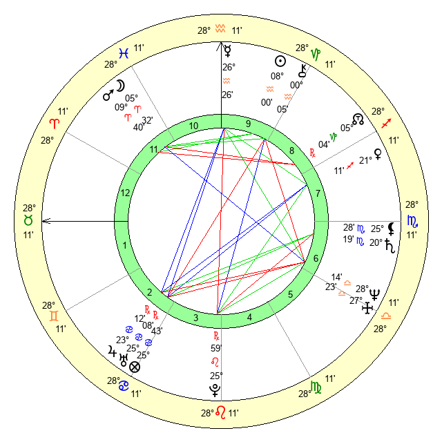 | Venus | 21 Sagittarius 11 | 24 Pisces 45 | 10 Pisces 57 |