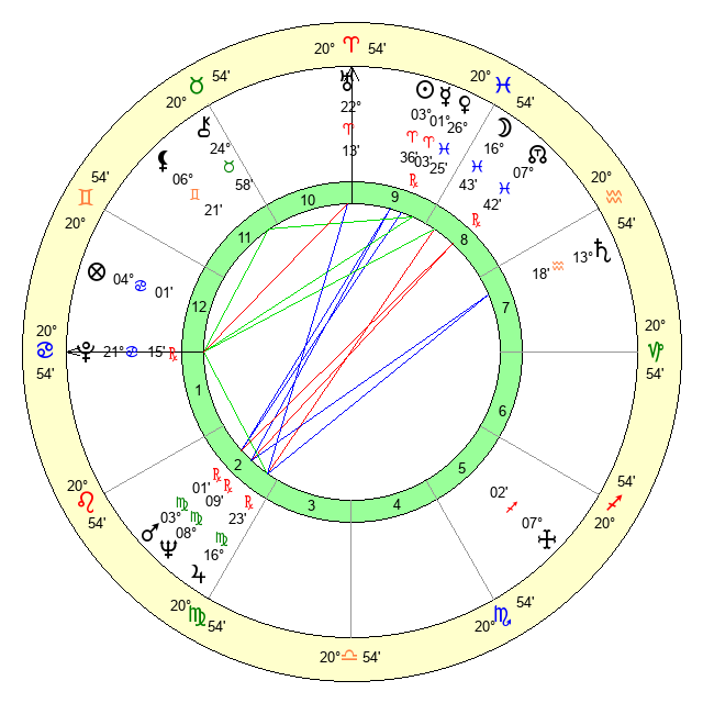| Sun | 3 Aries 36 | 4 Aries 18 | 2 Cancer 42 |