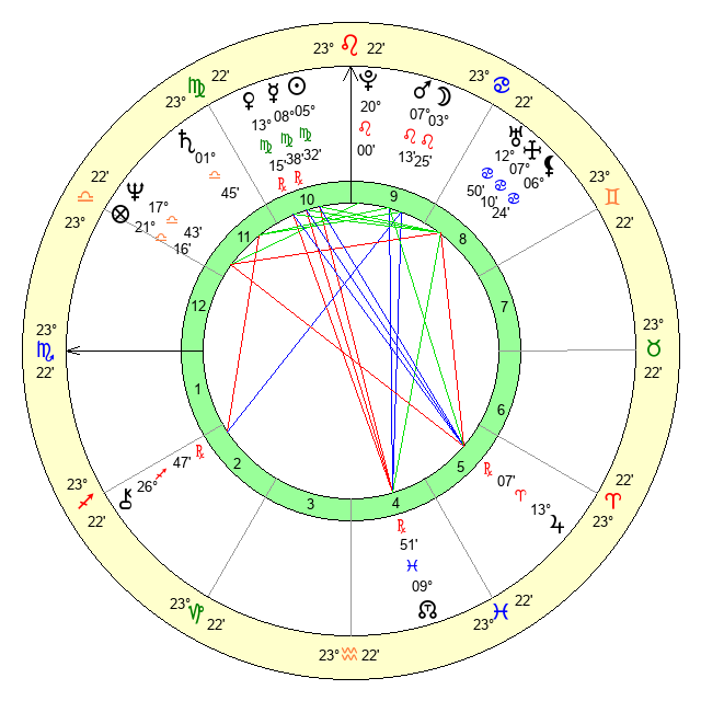 | Sun | 5 Virgo 32 | 6 Virgo 36 | 18 Scorpio 30 |