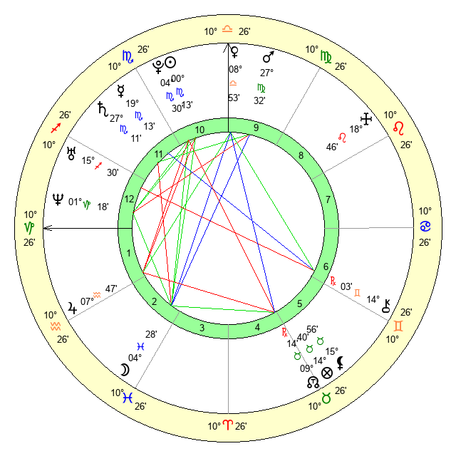 | Moon | 4 Pisces 30 | 24 Scorpio 27 | 8 Leo 21 |
