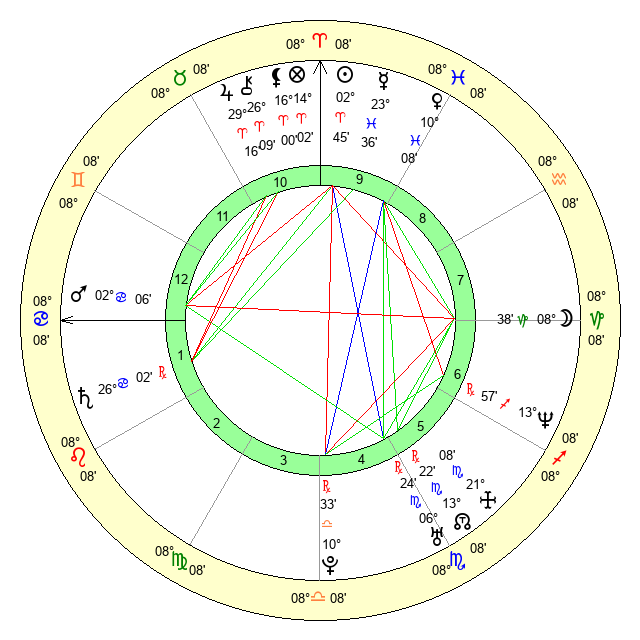 | Saturn | 26 Cancer 26 | 23 Pisces 21 | 28 Cancer 7 |