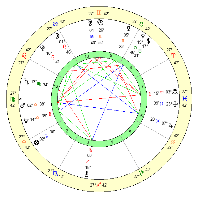 | Sun | 26 Gemini 52 | 27 Gemini 42 | 8 Virgo 40 |