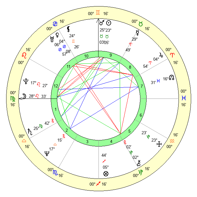 | Saturn | 26 Virgo 16 | 29 Pisces 3 | 28 Virgo 51 |