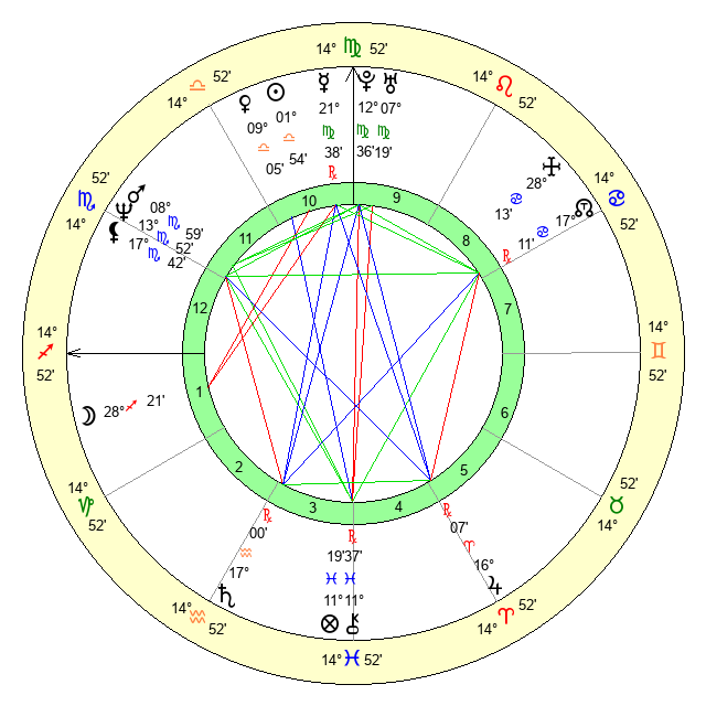 | Uranus | 7 Virgo 23 | 1 Gemini 19 | 9 Virgo 57 |