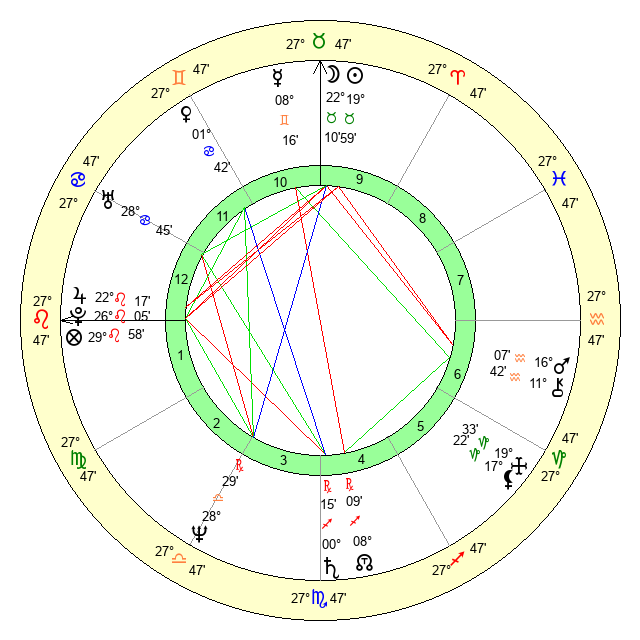 | Moon | 22 Taurus 11 | 28 Libra 28 | 10 Sagittarius 16 |
