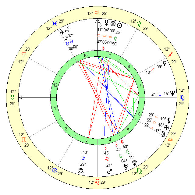 | Uranus | 4 Virgo 46 | 23 Taurus 21 | 2 Virgo 15 |