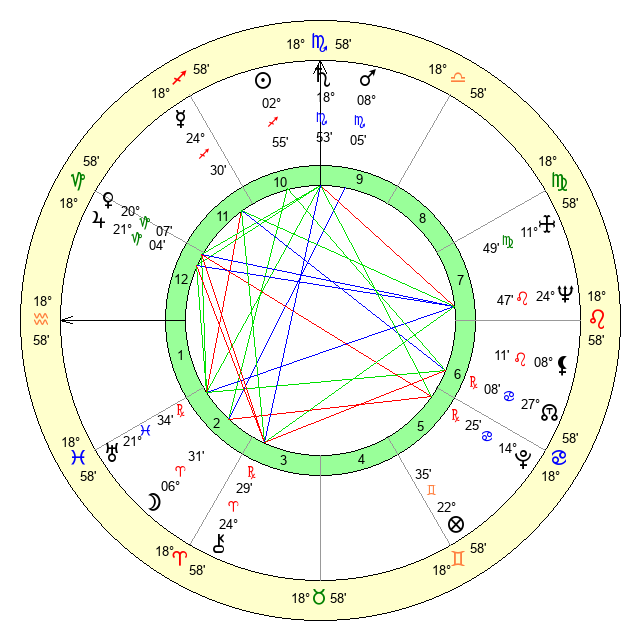 | Moon | 6 Aries 32 | 3 Aquarius 30 | 22 Scorpio 33 |