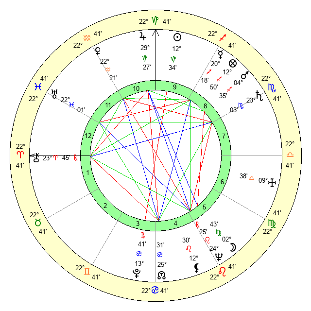 | Saturn | 23 Scorpio 31 | 14 Pisces 40 | 25 Scorpio 28 |