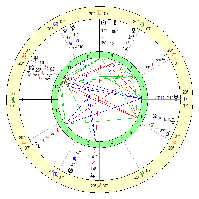 | Sun | 17 Gemini 35 | 18 Gemini 9 | 24 Virgo 30 |