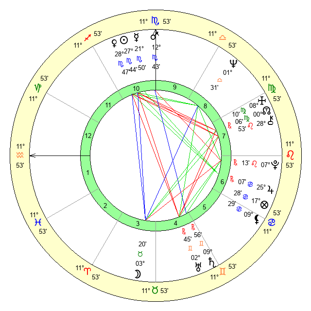 | Sun | 27 Scorpio 45 | 28 Scorpio 37 | 22 Aquarius 6 |