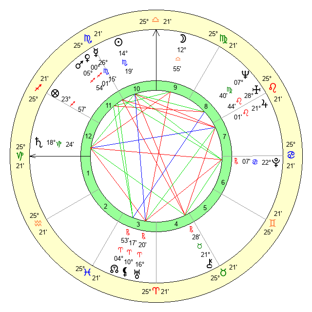 | Moon | 13 Libra 2 | 16 Gemini 2 | 24 Pisces 47 |