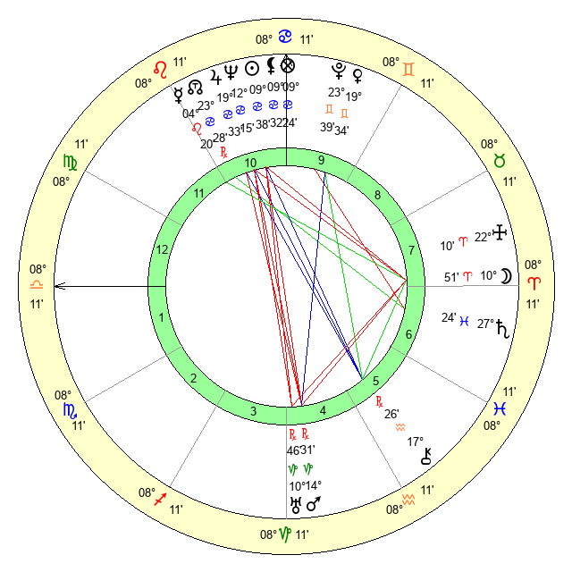 | Moon | 10 Aries 57 | 9 Libra 59 | 27 Cancer 27 |