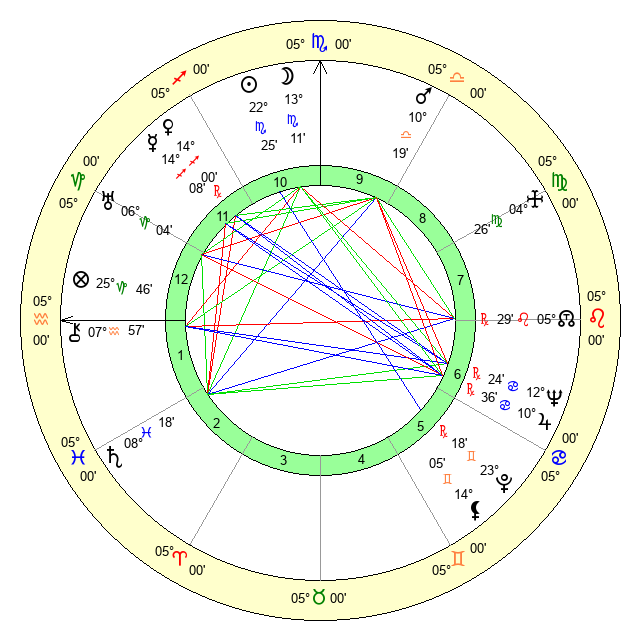 | Moon | 13 Scorpio 7 | 3 Libra 37 | -1 Aries -18 |